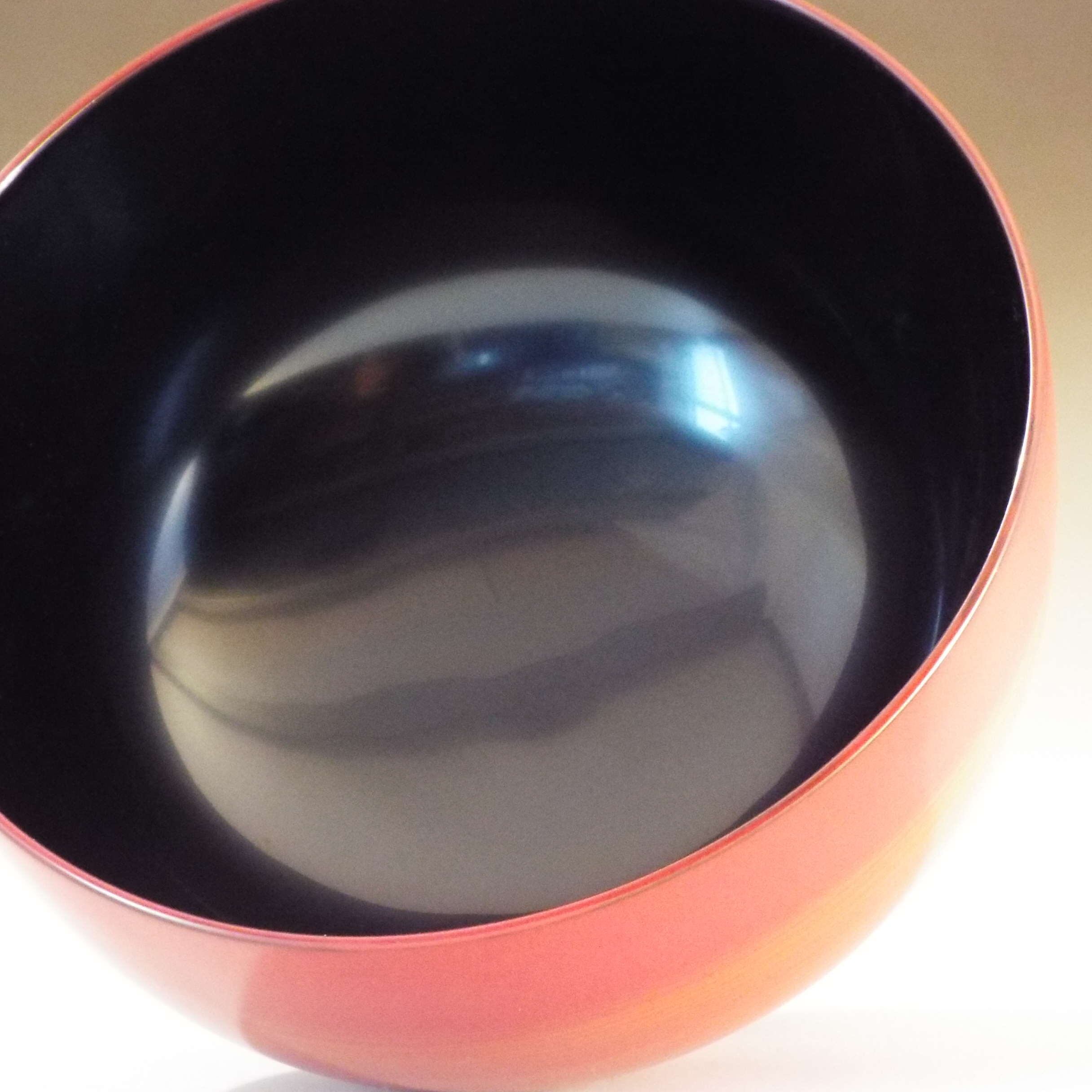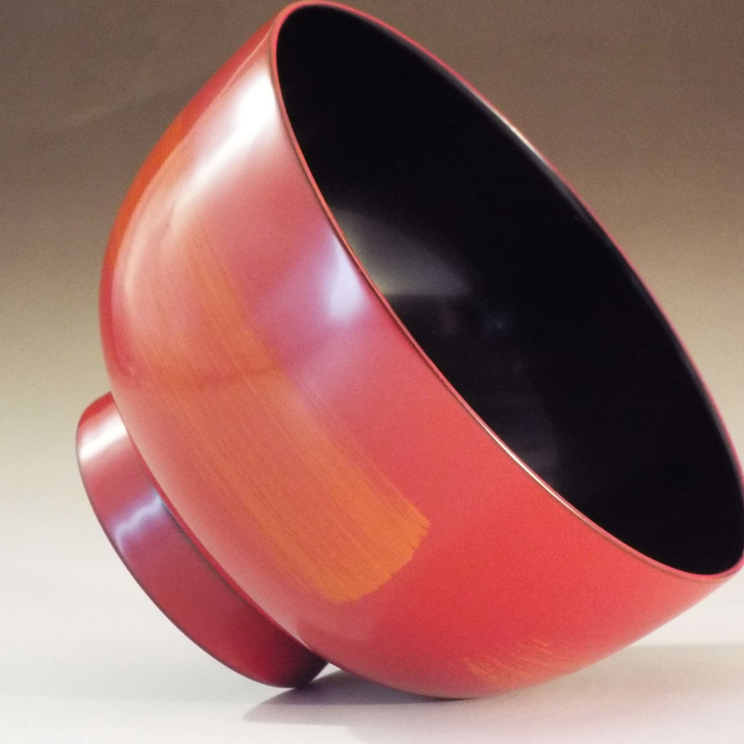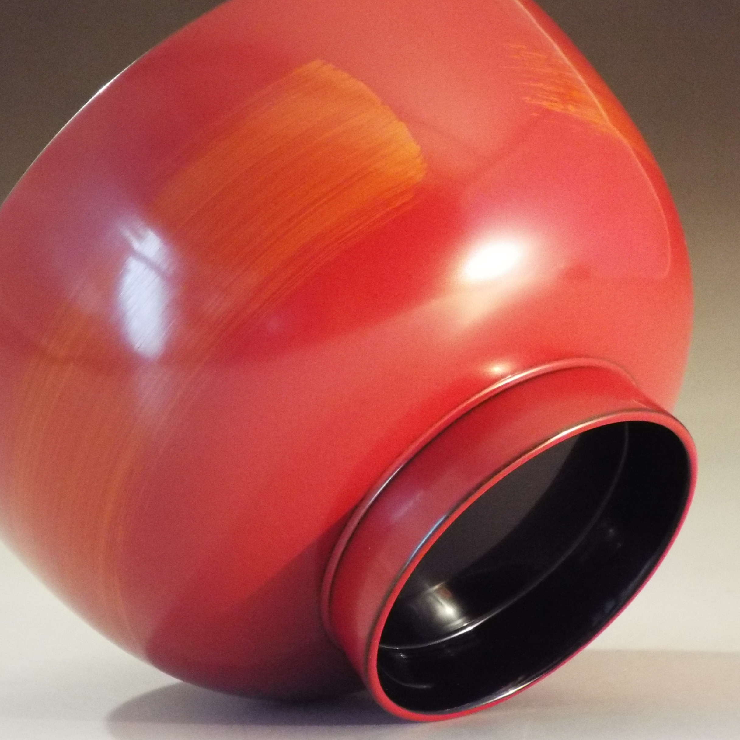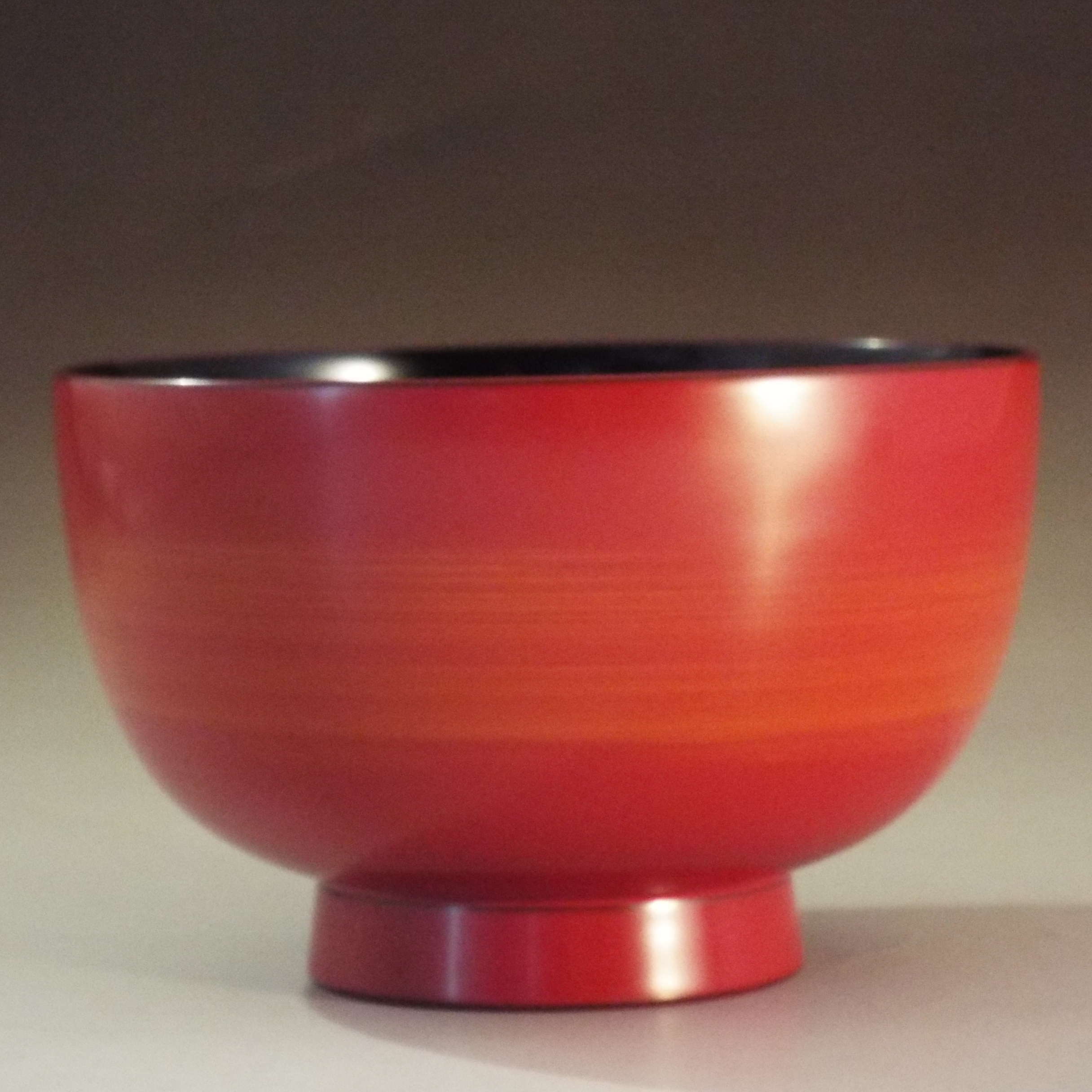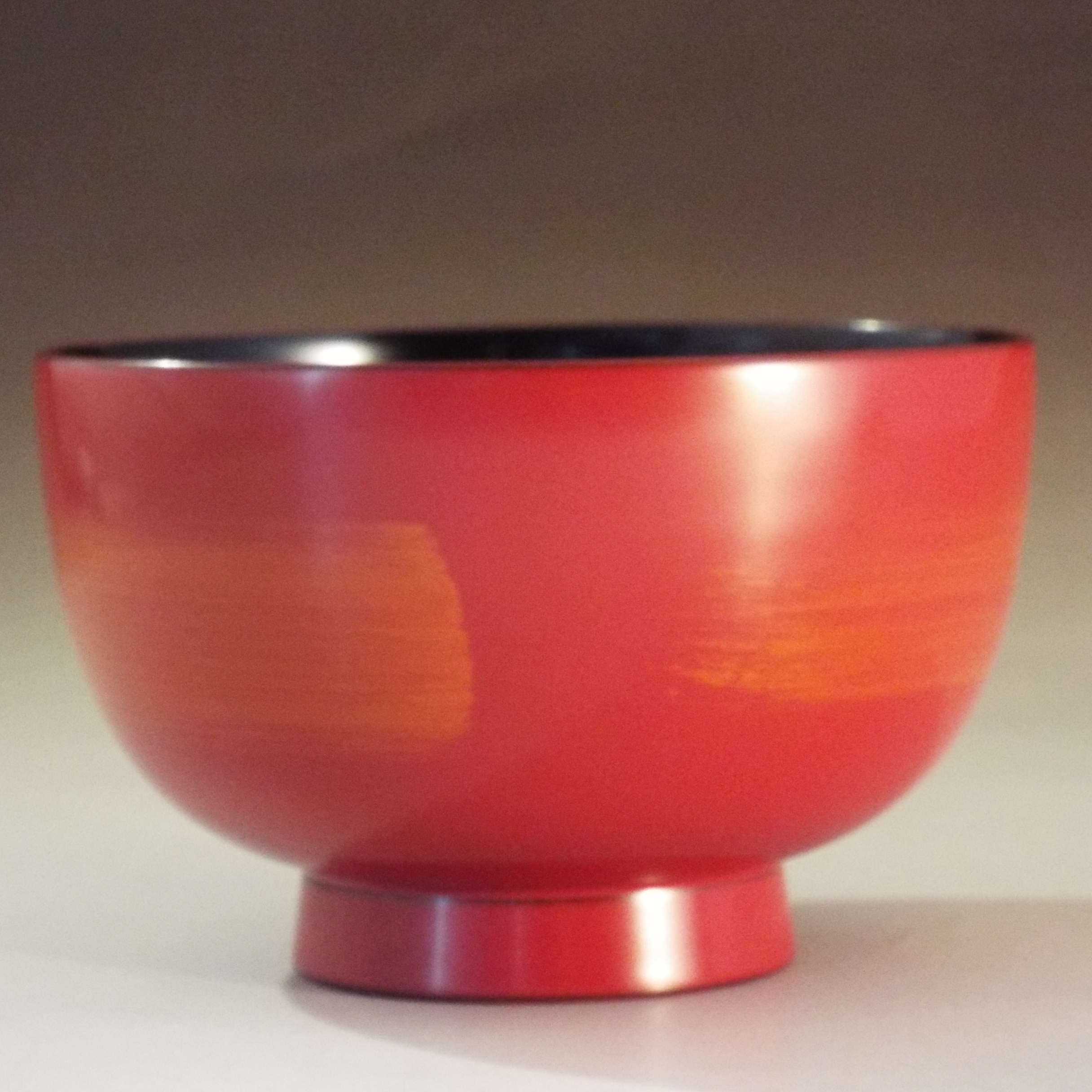 京型椀に刷毛筋を付けた模様であしらいました。見た目にも優しく感じることが出来る椀となっていますね。この椀んも下から伝統工芸士の私が一人で初めから塗り仕上げた品物です。在庫確認していただければと思います。